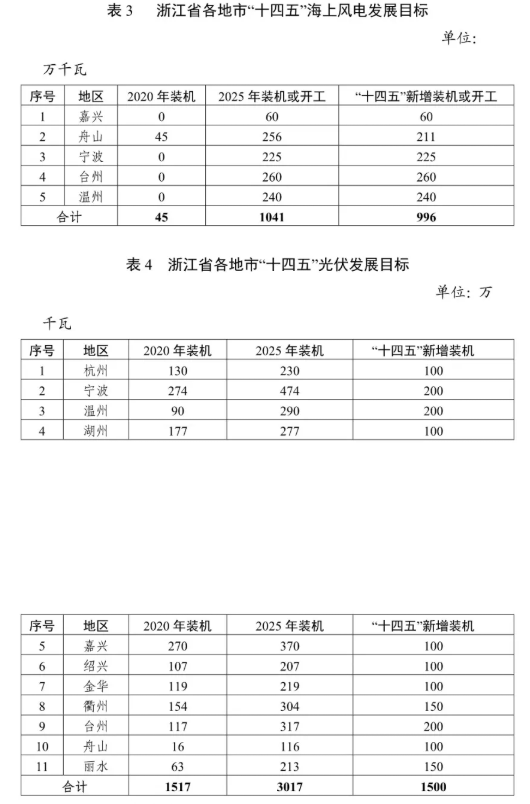 "十四五"海上風(fēng)電和光伏發(fā)展目標(biāo)進(jìn)行明確,詳見(jiàn)表 3和表 4。