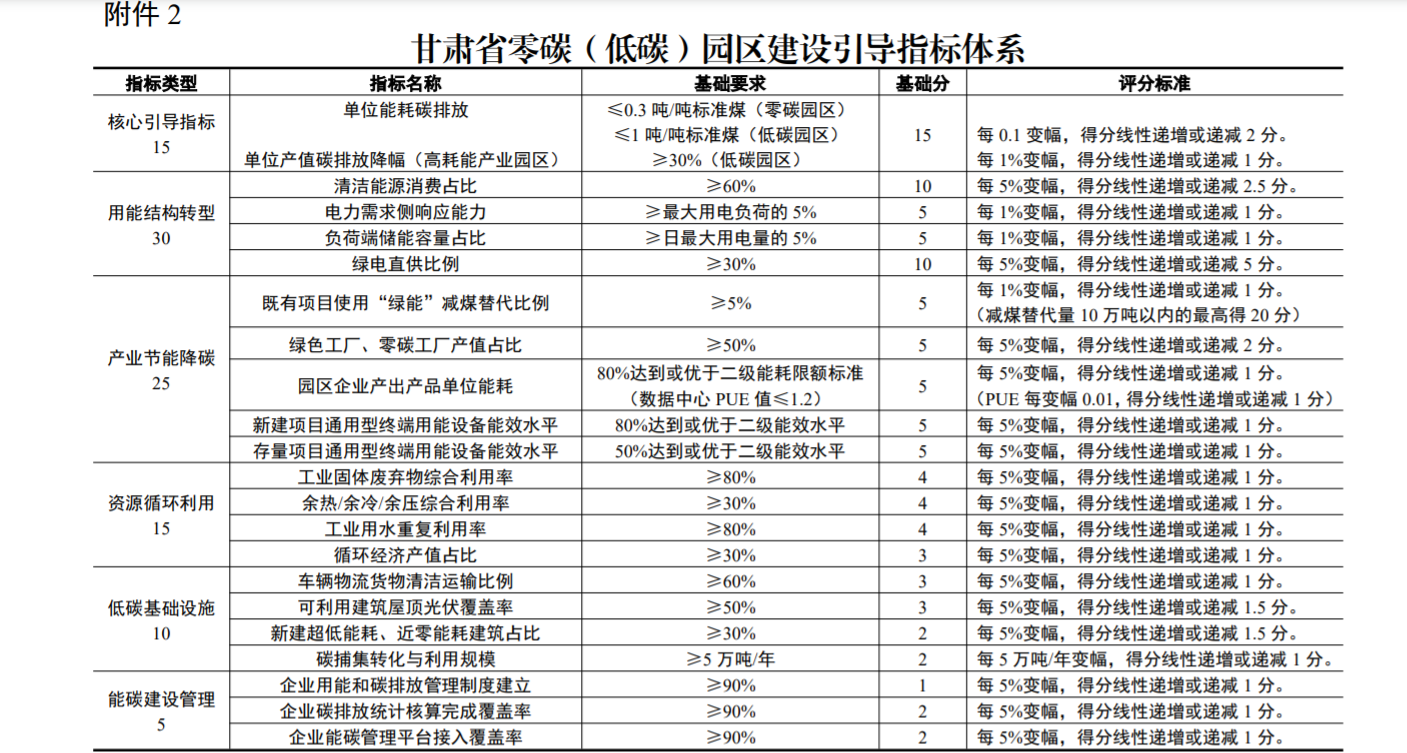 地方政策《甘肅省零碳園區(qū)建設方案》:5年建成10個左右零碳(低碳)園區(qū)