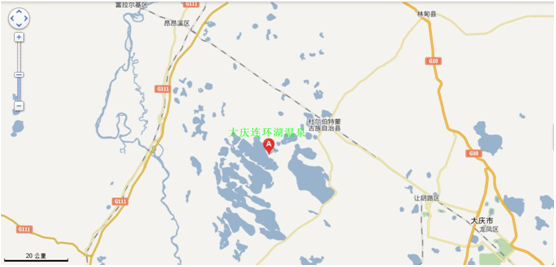 連環湖溫泉位于黑龍江省大慶市杜爾伯特縣城泰康鎮西南18公里處。杜爾伯特縣泰康鎮位于黑龍江省大慶市北部,北緯46°54′30″、東經124°26′30″。東靠林甸縣,南與大慶市接壤,西、北與一心鄉和克爾臺鄉相鄰。是黑龍江省杜爾伯特蒙古族自治縣人民政府所在地,是全縣政治、經濟、文化、商貿、交通的中心。