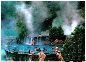 | 浙江省金華市溪里溫泉風景 武義溫泉對皮膚病、心血管病有很好的康復療效;對風濕性關節炎、神經衰弱、慢性腸胃炎也有特殊的效果;用此泉洗浴,皮膚滑膩舒適,頭發烏亮,且能加速人體血液循環,改善心臟,促進消化,加快新陳代謝,對維護神經系統的正常機能以及養顏美容都有良好的保健作用。同時,利用溫泉發展特殊種植、水產養殖業也有著看好的前景。
