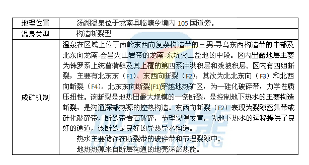 江西省龍南縣湯湖溫泉成礦機制![]() ![]() 江西省龍南縣湯湖溫泉區域地質圖 |