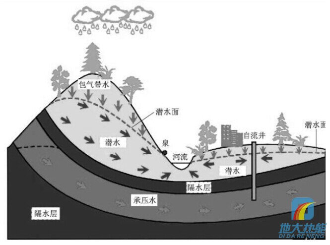 包氣帶水 是指埋藏于包氣帶中的地下水,包氣帶指巖石空隙未被地下水充滿的地帶,多為吸著水或薄膜水,而重力水較少。如果下滲水多時(shí),可出現(xiàn)較多的重力水。 運(yùn)動(dòng):主要作垂直方向上的運(yùn)動(dòng),如重力水常由上向下運(yùn)動(dòng)、毛細(xì)水由下向上運(yùn)動(dòng)。 主要包括:土壤水、上層滯水、沼澤水、沙漠及濱海沙丘中的水等。一般水量不太,易受污染,故不易作為工農(nóng)業(yè)供水水源,但對(duì)于植物生長(zhǎng)具有重要意義。 潛水 地面以下第一個(gè)穩(wěn)定隔水層以上具有自由水面的地下水 承壓水 充滿兩個(gè)隔水層之間的承受靜水壓力的地下水。